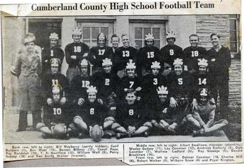 school year – CUMBERLAND COUNTY HIGH SCHOOL FOOTBALL TEAM - Back row left to right: Bill Mayberry (partly