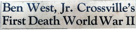 WEST JR – CROSSVILLE’S FIRST DEATH WORLD WAR II - Parents Receive Telegram from Navy