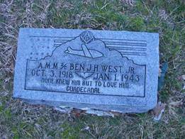 Knoxville News Sentinel – January 12, 1943 - PARENTS AWAITING SONS RETURN LEARN HE’S KILLED - By BESSIE M. WILSON ^News-Sentinel Correspondent - CROSSVILLE, Jan. 12— “If you open the door some day and see me standing there. Mother, don't faint. I probably won't let y o u know when I'm coming." That is what Ben H. West Jr., 24, wrote on Dec. 11 to his parents, Mr. and Mrs. Ben H. West, of Crossville. Every day since receiving that letter, Mr. and Mrs. West have been watching the street, listening to every step, waiting to hear a gay, "Hi Mom! How are you, Dad?" But all that ended late Saturday afternoon when Mr. and Mrs. West received a message from the Navy Department stating that their son had been killed on Jan, 1 in a plane crash, "while in performance of duty and service of his country." Ben who enlisted with the Navy on Dec. 1, 1940, was a machinist's mate second class, and is the first boy from Crossville to give his life in World War 2. Ben is survived by his parents, and his younger brother, Corp. Paul West of the Army. He attended U-T a year.