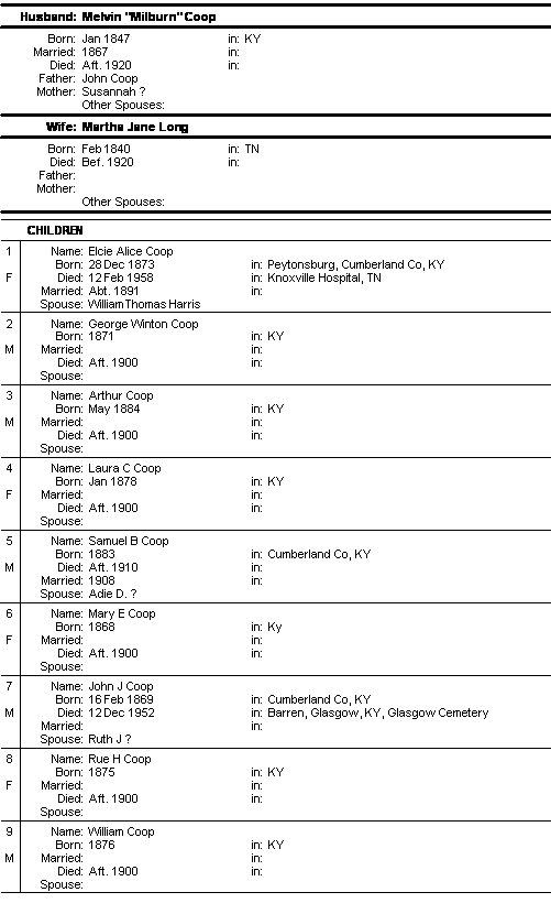 (b ) COOP, RUTH J, 25, (obviously a 2nd wife), KY, KY, KY