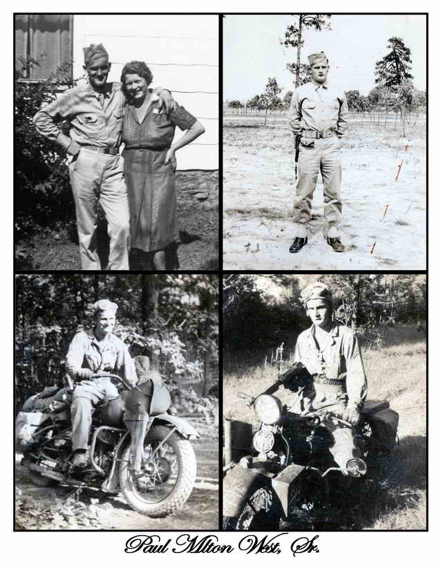 Crossville Chronicle, Date unknown - Corporal Paul West, second son of Mr. and Mrs. Ben H. West, enlisted in the Army in August, 1940,at the age of 17. His basic training was had at Ft. Benning, Ga. His marriage to Miss Lula Bruce took place on July 5, 1942. He is now stationed with a motorized division at Camp Gordon, Ga.